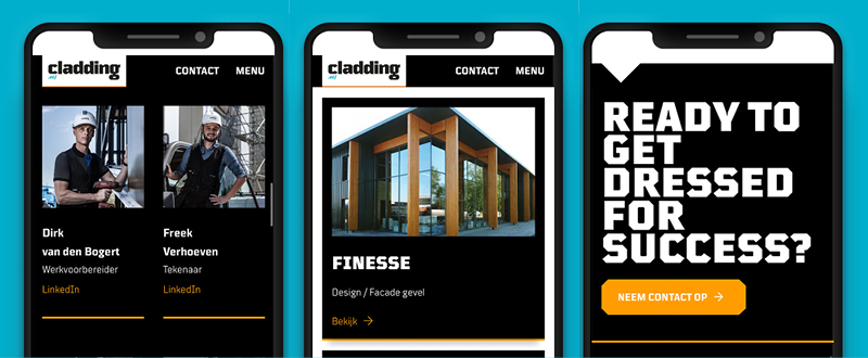 Cladding wil vernieuwen. Innoveren. Vooroplopen. Niet alleen als het om een pand, techniek en materialen gaat, maar ook als het om de website gaat. De website fungeert als portfolio en de online voorgevel van Cladding, maar laat ook de laatste trends op het gebied van dak- en gevelbekleding, onderhoud en veiligheid zien. Cladding wil in de branche opvallen en spraakmakend zijn en durft haar nek uit te steken door ook de website een eigentijdse look & feel te geven en wekelijks te vullen met verse content.