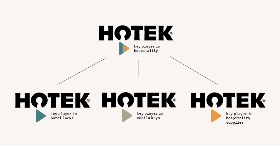 Hotek heeft SuperRebel Agency benaderd om na te denken over de identiteit en merkarchitectuur. De wens was 1 sterke merkidentiteit die het bedrijf en merk klaarmaakt voor de toekomst. In het verleden werd er gebruik gemaakt van het merk Hotek en een aantal subbrands, waaronder Your Mobile Key en Be Dutch. Om in de toekomst een sterk merk met internationale allure te zijn heeft SuperRebel een nieuwe merkarchitectuur ontwikkeld uitgaande van een sterke merknaam. Hotek. Met daaronder divisies die zich onderscheiden door kleurgebruik.