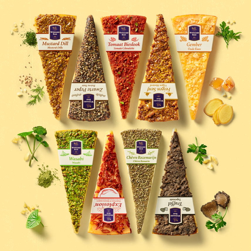 De affineurs van Wyngaard hadden behoefte aan een nieuwe, smaakvolle positionering. Iets meer van nu, nog iets meer smaak en vooral iets meer uitgesproken. Zeker als je bedenkt dat Wyngaard al meer dan 100 jaar de lekkerste Nederlandse kazen laat rijpen en voorziet van een heerlijke smaak, zoals truffel, mosterd Dille of Spaanse peper. Dan is het begrip affineur chique maar iets te bescheiden, het kan zeg maar wat meer peper gebruiken. Zeker met de introductie van de nieuwe smaak Explosion, wat de aanleiding was voor de ontwikkeling van de nieuwe, smaakvolle positionering: Smaakmakers van de Kaasmakers.