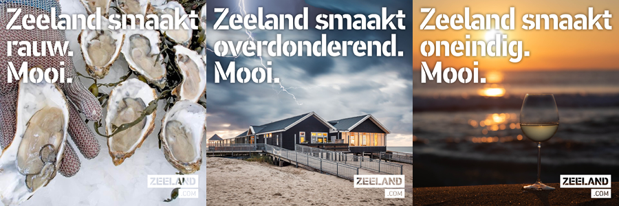 Zeeland heeft eigen smaken, die je nergens zo lekker vindt als hier. Aan de kust of op het strand smaakt het anders dan in de haven, de wijngaard, de oesterputten of van de klei. Zo heeft ieder stukje Zeeland een eigen smaak. Iedere plaats, ieder eiland, iedere overkant; smaak is lokaal en overal anders. Zeeland smaakt aan alle kanten. Mooi. Het nieuwe thema refereert met ‘mooi’ nog aan het eerste thema dat we ooit verzonnen: Niet iedereen houdt van Zeeland. Mooi. Maar dan toegespitst op de Zeeuwse smaak. De invulling van de campagne is net zo scherp en schurend, net zo contrasterend als de vele kanten die Zeeland kent. Zeeland smaakt ongezouten. Recht voor je raap. Ongerept. Ongepolijst. Ongelikt. Aan alle kanten. Mooi.