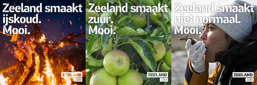 Na de eerste set uitingen in het najaar is er inmiddels een nieuwe set ontwikkeld, waarin nieuwe, op het voorjaar en de zomer gerichte Zeeuwse smaken voorbijkomen. Voor ons een reden om te zeggen dat ze in Zeeland de smaak te pakken hebben en dat de campagne naar meer smaakt. Mooi.