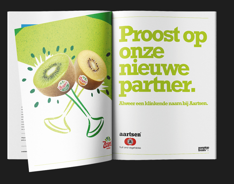 Aartsen Fruit and Vegetables heeft door haar goede naam en persoonlijke contacten, maar mede door een slimme niet-traditionele campagne de aandacht weten te trekken van het grote internationale fruit merk Zespri™ Kiwifruit.
