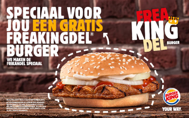 Het concern omarmt de Nederlandse frikandel, maar ziet ruimte voor verbetering. De bekende gefrituurde, met saus en uien geserveerde snack verandert in een vierkante, boven vlammen gegrilde burger met grilstrepen en een authentieke grilsmaak. ‘Flame grilled’ dus, zoals alle BURGER KING® burgers. Het is dus niet alleen de saus van curry, mayonaise en ringen van verse ui, maar vooral de bereidingswijze en manier van serveren die de FreaKINGdel® Burger speciaal maakt.