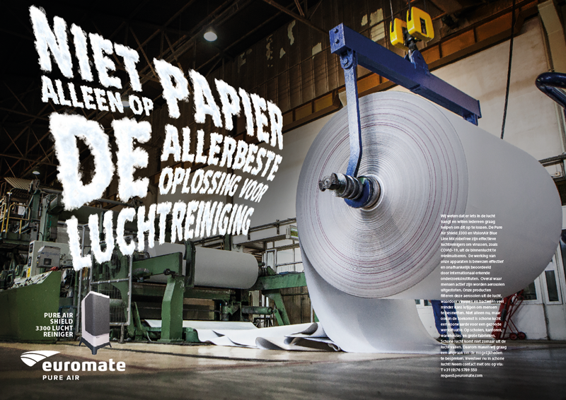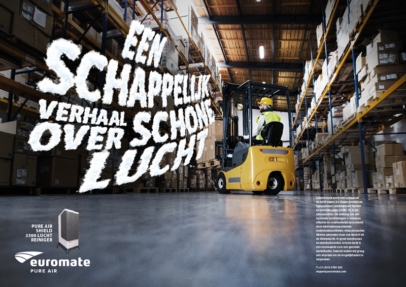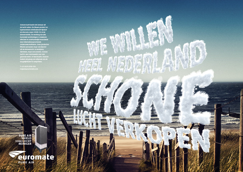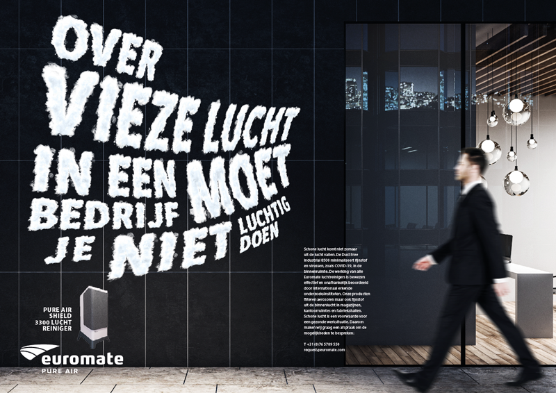 Dit is de nieuwe campagne voor de luchtreinigers van onze nieuwste opdrachtgever Euromate International die startte met een uitgesproken advertentie in Het Financieele Dagblad.