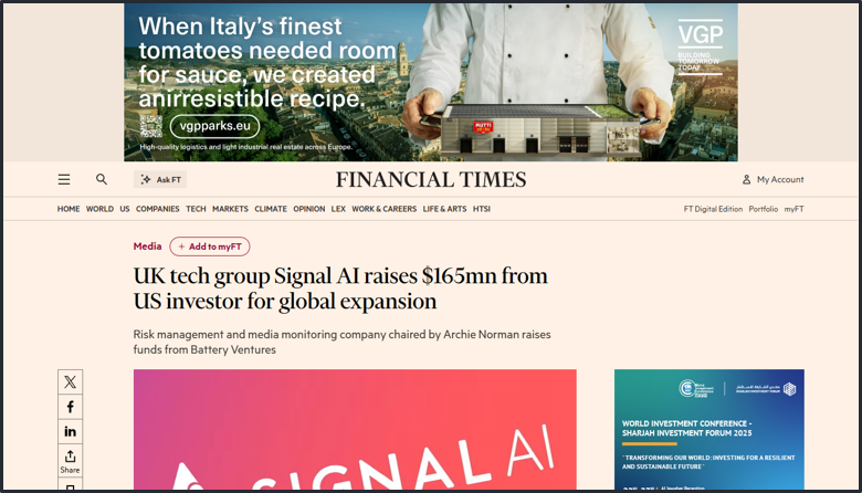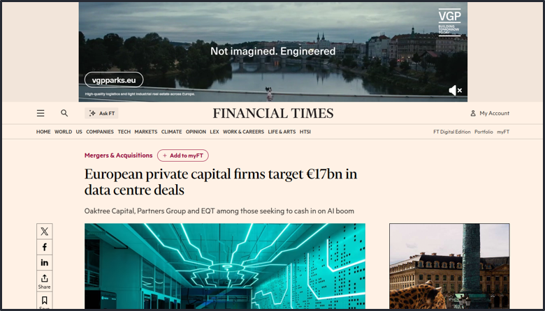 De campagnevideo draait volop op LinkedIn en krijgt een extra boost van deelnemende merken zoals Zalando, DPD, KraussMaffei en Macron. Tegelijkertijd laat VGP zich zien in de Europese topmedia: een volle pagina in de Financial Times, plus zichtbaarheid in Il Sole 24 Ore (Italië) en Handelsblatt (Duitsland). En alsof dat nog niet genoeg is, verschijnt de campagne op 11 internationale luchthavens, van Parijs en Milaan tot Praag, Kopenhagen en Madrid.
