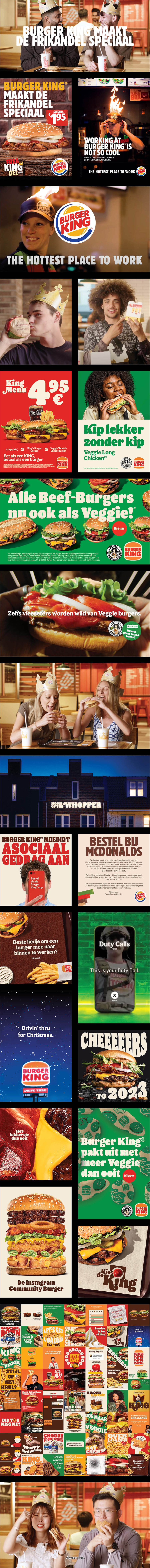 Met iedere burger King ontwikkelden we campagnes voor burgers die meer van planten houden, voor burgers die willen vlammen, gamende burgers, wervende burgers, bezorgde burgers, burgers die speciaal zijn, kiplekkere burgers zonder kip, dronken burgers en burgers die wild zijn van vegetarisch. Voor Burger King ontwikkelen we al vijf jaar campagnes voor televisie, radio, outdoor, online en social media. Alle media die we nodig hebben om iedere burger King te maken.