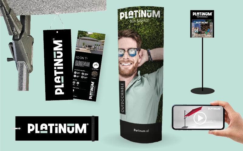 We gingen altijd voor goud, maar sinds kort ook voor Platinum. Platinum is namelijk onze nieuwe klant. Het prachtige bedrijf dat bij ons is geïntroduceerd door Committed Capital uit Amsterdam heeft een half jaar geleden bij ons de vraag neergelegd om strategisch mee te denken over het merk en de merkarchitectuur. En over design van de merkidentiteit. Platinum is specialist in parasols, parasolvoeten, schaduwdoeken en tuinmeubelbeschermhoezen met een focus op productontwikkeling, marketing en premium service. Dat is waardoor ze anders en beter zijn. Platinum parasols en accessoires worden volgens de modernste richtlijnen geproduceerd en zijn bestand tegen lastige weersomstandigheden. Bovendien zijn ze een aanwinst voor iedere tuin of terras. Platinum parasols worden uitsluitend verkocht via de vakhandel.