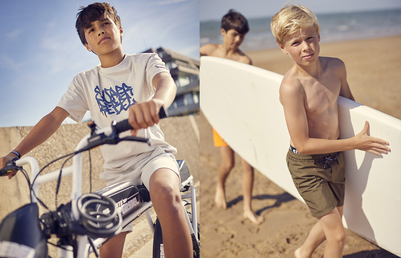 De brave kids kunnen deze zomer op het strand een statement maken met de nieuwe beachcollectie van SuperRebel Kidsgear. De collectie bestaat uit badkleding, gebaseerd op grafische prints, opvallend felle kleuren en SuperRebel details en statements. Belangrijk is de pasvorm en draagcomfort, zodat de zwembroeken, bermuda’s, bikini’s, badpakken, shorts en shirts voor, tijdens en na het zwemmen gedragen kunnen worden. Speciaal voor de brave beach boys and girls that just wanna have sun.