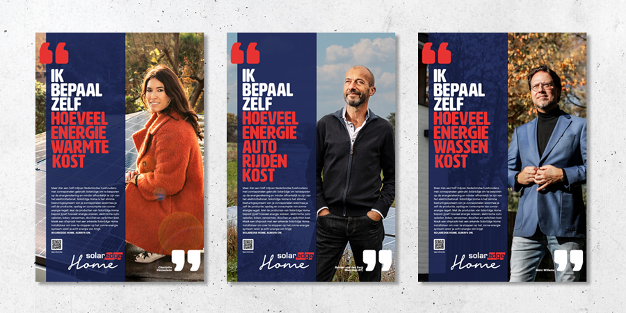 We zijn gestart met een triggerende campagne waarin (bekende) mensen zeggen dat ze gaan overstappen naar Solar Edge. De campagne wordt daarna stelliger. We zien gebruikers van SolarEdge die zeggen dat ze liever 'zelf bepalen' hoeveel energie bepaalde zaken ze kost. Als je inderdaad zelf wil bepalen hoe je met je energie omgaat dan kan je niet zonder SolarEdge. De campagne is brutaal, stellig en heeft mileage en is in executie en copy onderscheidend. Qua media is gekozen voor online gecombineerd met offline. De campagne 'always on' is gestart met een 1/1 pagina in Het Algemeen Dagblad. Begin volgend jaar volgt ook een campagne voor SolarEdge Business, waar nu de laatste hand aan gelegd wordt.