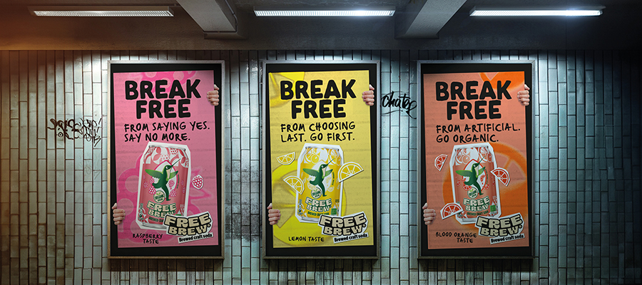 SuperRebel lanceert daarom de campagne ‘Break free from…’. Een ‘colibrie sized protest’ die laat zien dat je met heel veel kleine acties een groots effect kunt bereiken. Kortom klein is het nieuwe groot. FreeBrew laat daarom geen middel onbenut om te schoppen tegen belachelijke normen. Van een mini-protestbord als roerstaafje tot outdoor uitingen. Ieder middel draagt eraan bij om het geluid van deze nieuwe beweging luider te maken. En zo dus meer rumour around the brand (FreeBrew) creëert. Waarmee je overigens net zoveel plezier kunt hebben als met een alcoholisch drankje. Nog zo’n rare norm, alcohol drinken.