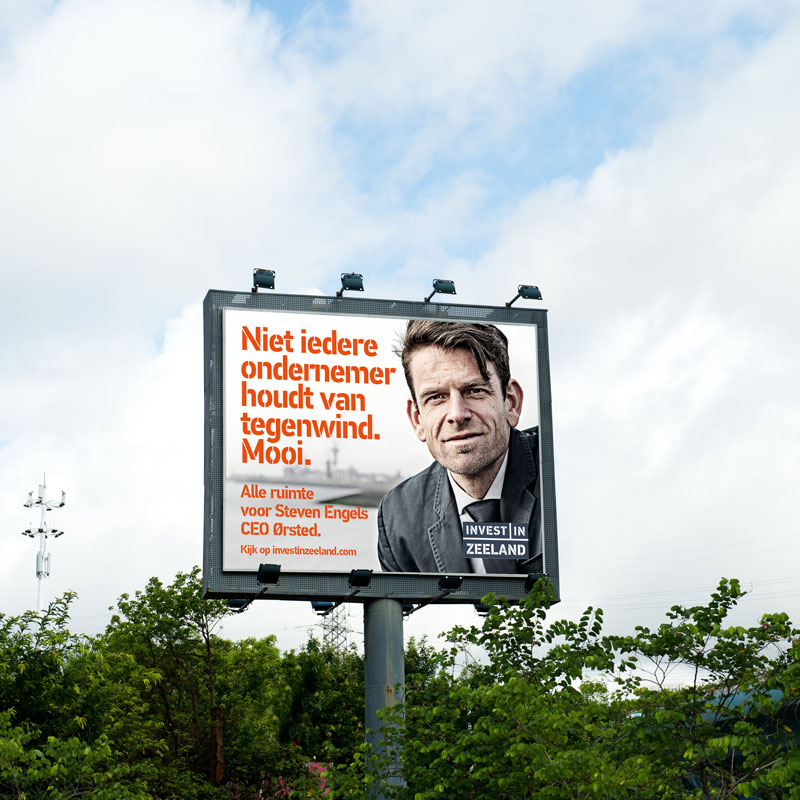 Invest in Zeeland helpt ondernemers om zich te vestigen in Zeeland. Ze staan bedrijven bij met advies en ondersteuning. In de campagne komen pioniers aan bod, die het uitdagende ondernemersklimaat voor zich laten werken en perfect inspelen op de soms weerbarstige Zeeuwse omstandigheden. Zoals Steven Engels, de CEO van het Noorse Ørsted, die tegenwind omzet in positieve energie en bouwt aan het grootste windpark op zee. Met behulp van Invest in Zeeland krijgen dit soort ondernemers alle ruimte in Zeeland.