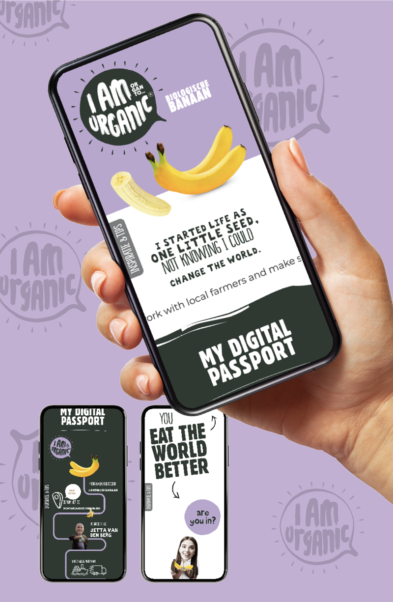 Deze gedetailleerde informatie is via de digitale paspoorten beschikbaar voor ieder product van I AM Organic. Op een leuke, speelse en toegankelijke manier krijgen klanten zo inzicht in de verhalen achter de onschuldige banaan, rode appel, witte druif, en blauwe bes van I AM Organic. Zo werken ze samen met lokale boeren, transporteurs en retailers om de wereld beter te laten eten. Let’s eat the world better.